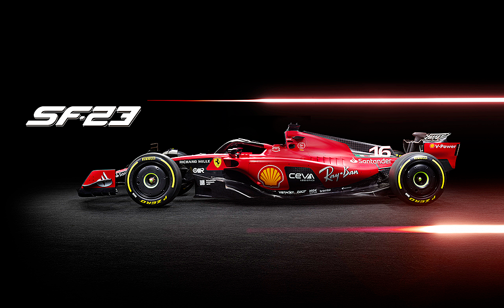 The new car is designated ‘SF-23’ and this marks a return to the format of the Scuderia Ferrari initials combined with the year of competition, as has been the case for most of the hybrid era, was first seen on video.