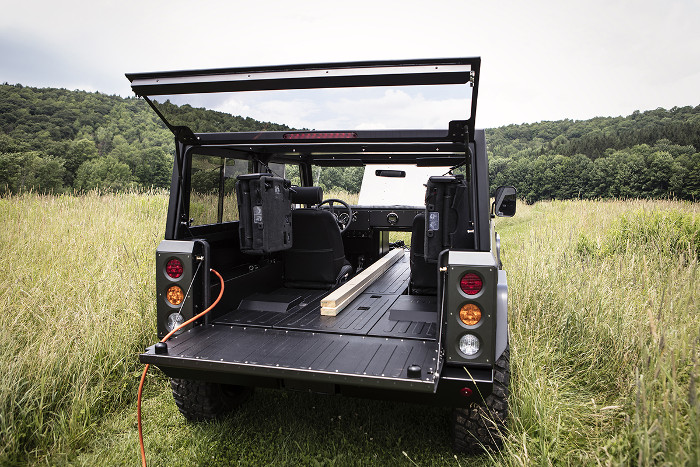 The boxy design is rather basic and combines elements of several classic vehicles. It incorporates some design elements of the Defender for the front fascia, as well as the A-pillars, but further back, the squared roof and c-pillars are reminiscent of older Jeep Wrangler models.
