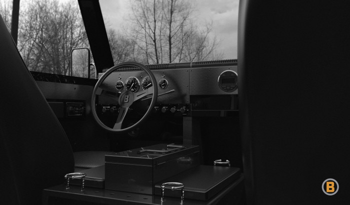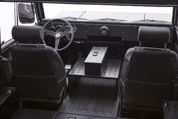 On the inside, the basic black design continues and there’s only minimal gauges and switch gear. What’s unique however, is the machined table-like centre console that should allow for ample storage and placement of tools.