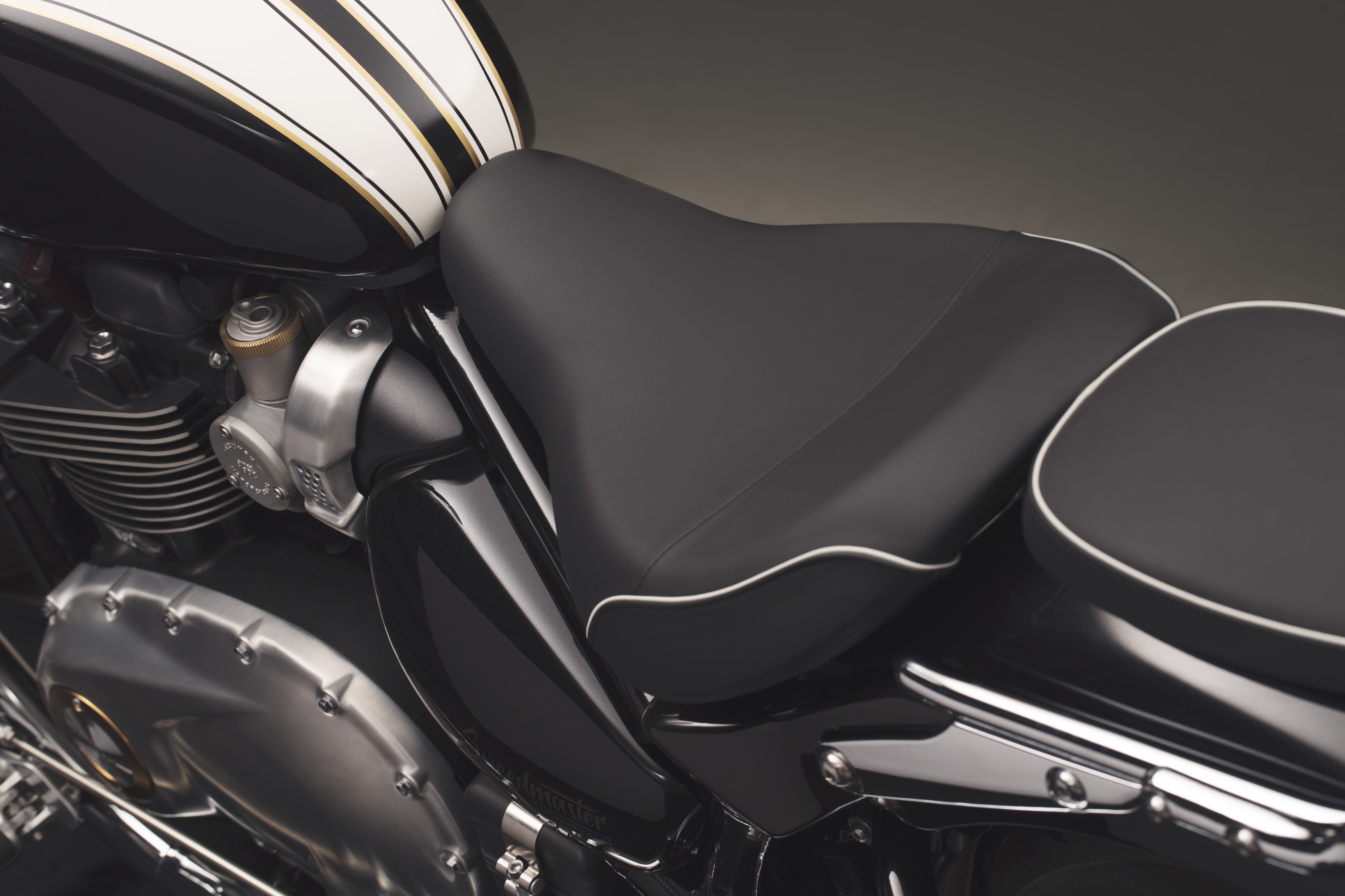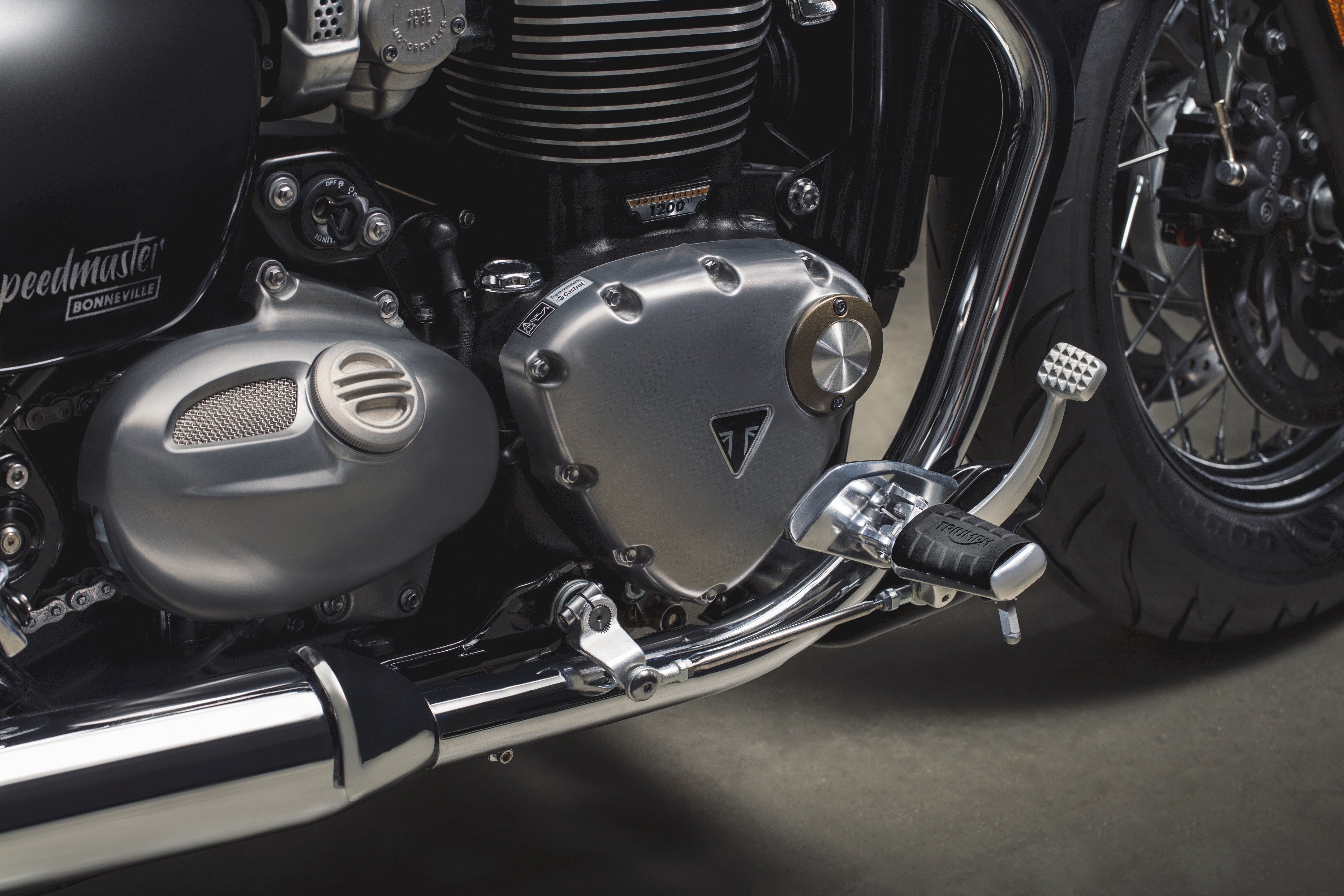 Powering the Speedmaster is Triumph’s critically acclaimed 1200cc High Torque parallel-twin engine with an even higher torque engine tune of the Bobber. Peak torque is rated at 106Nm at 4,000rpm – a 42% increase from the 2015 Triumph Speedmaster and 10% more than the current generation Bonneville T120. Horsepower is rated at 77PS and is transferred through a slick shifting six-speed gearbox. Peak power output is up 25% on the 2015 Speedmaster, and 10% on the Bonneville T120.