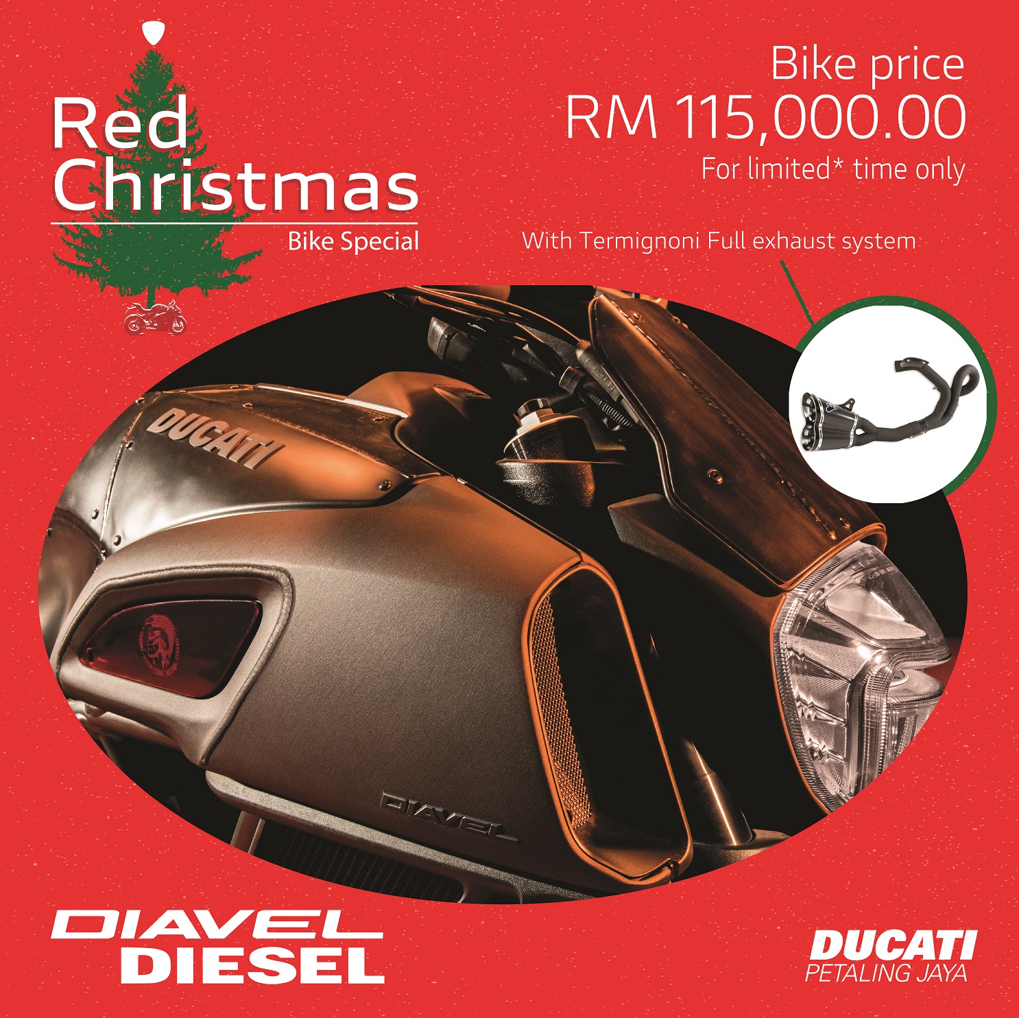 Bikers take note! From now until 31st December 2018, you can enjoy savings up to RM50,000 on selected Ducati bikes; exclusively for Ducati PJ customers, including the fun and versatile Multistrada 950 from only RM76,000 which comes with a free Touring Pack. At just RM115,000 onwards, customers can now own a Diavel Diesel (just the model name, runs on petrol); the timeless and unique bike reflecting Diesel’s hard rock DNA, complete with a Termignoni full system exhaust package.