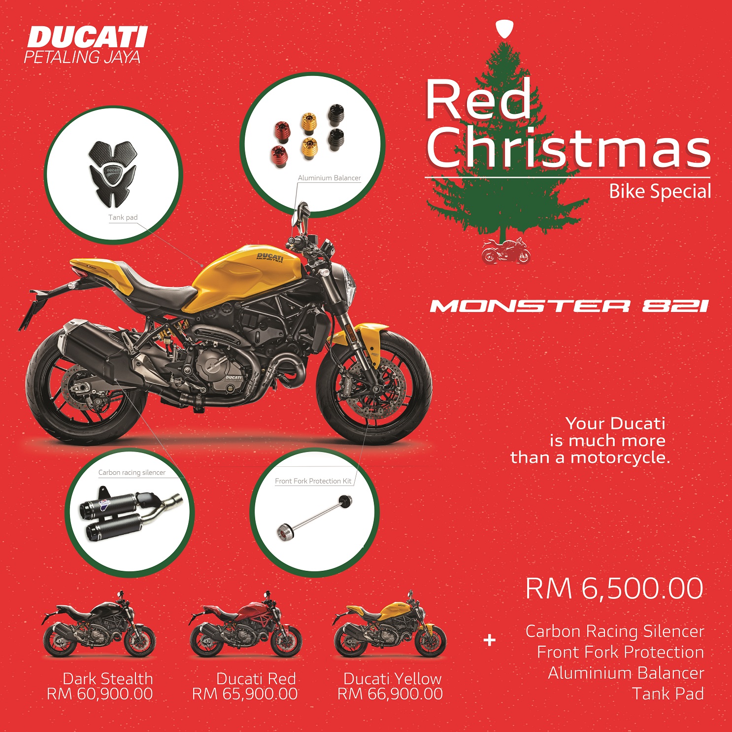 Ducati Malaysia is also offering amazing storewide discounts up to 70% on Ducati and Scrambler Ducati apparel until 2nd January at the official Ducati merchandise shop in Ducati PJ. To celebrate the jolly season, customers are encouraged to take this opportunity to gift their loved ones with festive Ducati merchandise gift sets. Additionally, Ducati fans can usher in the New Year with brand new Ducati Performance Parts & Accessories as the brand will be offering fantastic discounts at all authorised Ducati stores and dealerships nationwide of up to 80% for Ducati accessories and spare parts from 10th December 2018 to 13th January 2019.