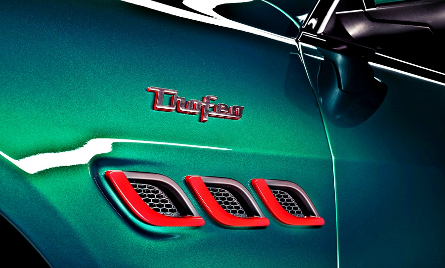 The striking colours are combined with burnished chrome-work and gloss red trim. The whole Trofeo collection is distinguished by the red details that characterize the bottom profiles of the side air vents and the arrow on the Trident badge on the C-pillars.