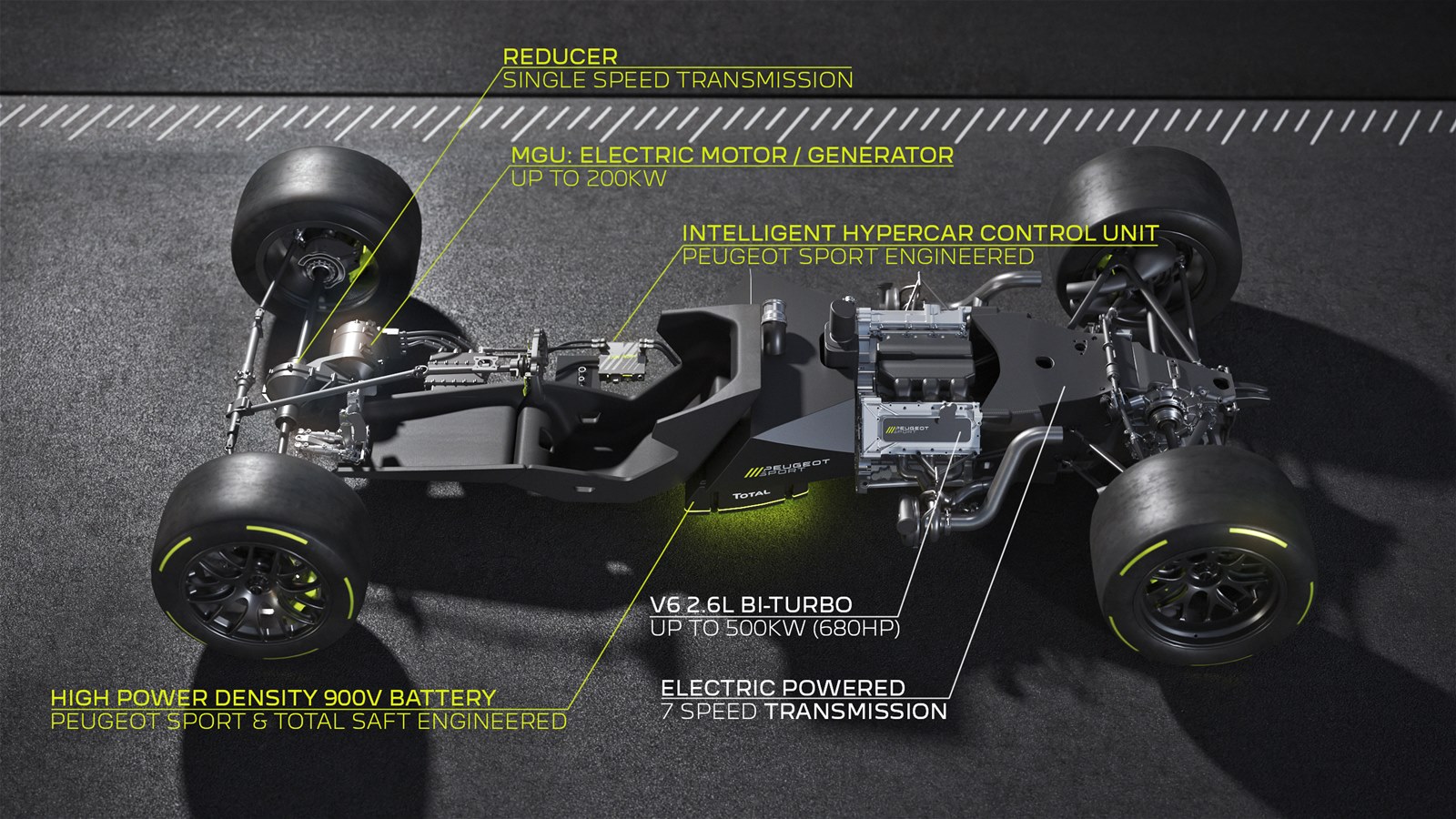 The 9X8 starts a new era for Peugeot in endurance racing, the motorsport category where it was previously victorious with the 905 and 908 in the 1990s and in 2009. Conforming to the regulations that govern the ACO and FIA’s new Le Mans Hypercar (LMH) category, the 4 wheel-drive racing prototype has a 2.6-litre bi-turbo V6 engine powering the rear wheels and a 200 kW electric motor driving the front wheels.