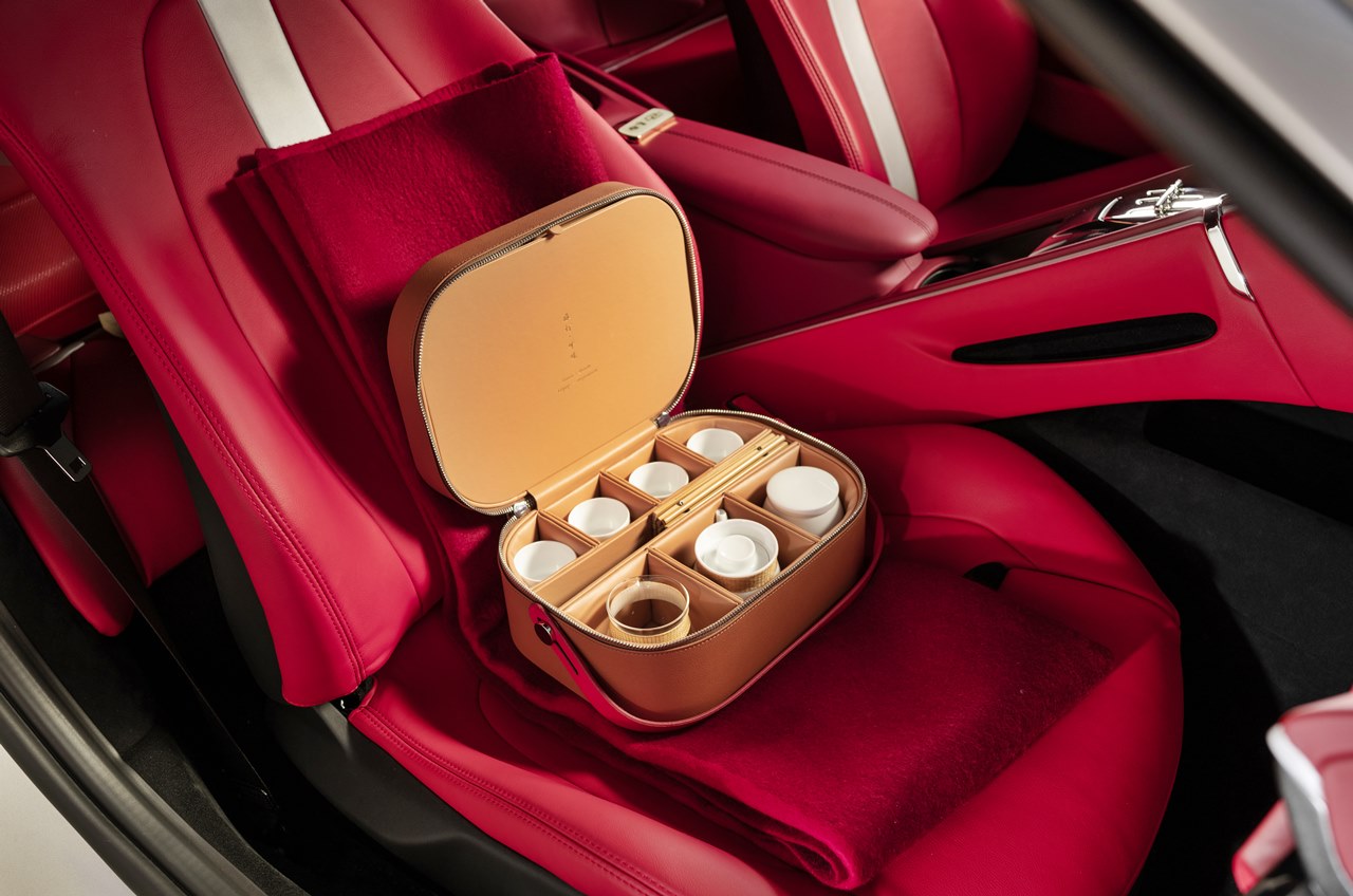 An exclusive lifestyle package has been designed by Jiang Qiong’er for this special Roma – a collection of multi-sensory pleasures that embody the quest for quality and style, stored discreetly in the glove compartment, armrest and boot.