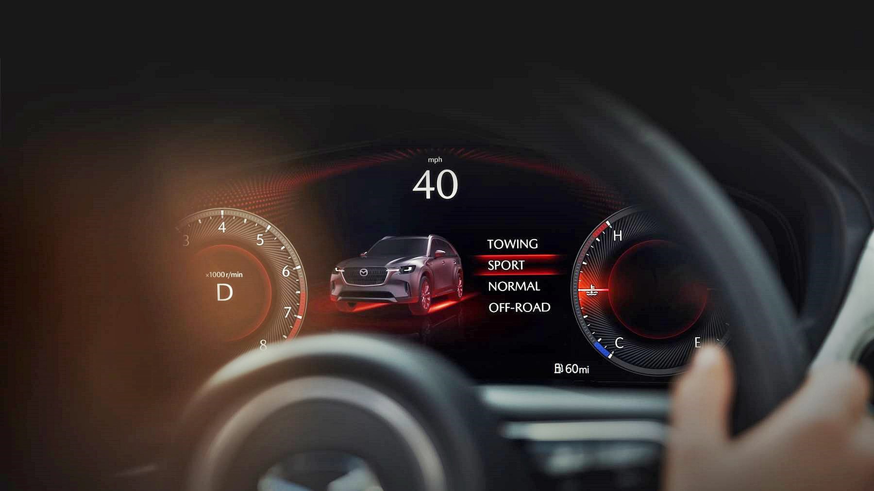 The interior designers also made full use of the larger interior space to provide larger displays, accompanied by physical buttons rather than joining the trend towards excessive touchscreen operation. New Mazda technologies include a See-Through View monitor on the 12.3-inch centre display which makes parking easier.