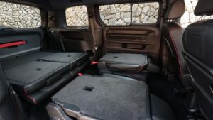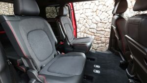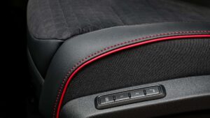 The ID.Buzz GTX receives various styling enhancements, including redesigned bumpers, a honeycomb grille, and striking Cherry Red paint. It also features standard 19-inch wheels, with two optional sets of 21-inch alloys available. Unique boomerang-shaped lower lights, dark accents, a black headliner, and sporty seats further distinguish the ID.Buzz GTX.