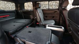 Inside, the van boasts a slightly larger touchscreen which is 12.9 inches, a new optional head-up display, and illuminated touch sliders for the AC and volume controls. The long-wheelbase model offers an optional panoramic sunroof that transitions from opaque to transparent at the touch of a button.
