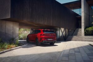 At the rear, the M Performance rear diffuser, crafted from high-tech materials, accentuates the X3’s bold design. This diffuser, available in both CFRP and high-gloss black polyurethane, integrates seamlessly with the Comfort Access system, allowing for hands-free operation of the luggage compartment lid. The M Performance roof edge spoiler, finished in high-gloss black and made from polyurethane, further enhances the vehicle’s aerodynamic properties and dynamic rear profile.