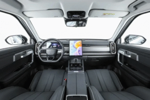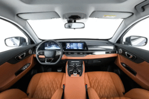 Ruang dalaman pula menampilkan paparan skrin sentuh infotainment 13.2 inci, panel instrumen digital 10.25 inci, dan stereng pelbagai fungsi tiga jejari. Peningkatan praktikal turut merangkumi tempat duduk hadapan dengan fungsi pemanas dan penyejuk, lampu solek bercahaya, sistem kamera panoramik 540 darjah, serta kawalan iklim automatik.