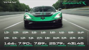 Among the most staggering accomplishments is the Nevera R’s 0–400–0km/h record, which now stands at an astonishing 25.79 seconds, reducing the original Nevera’s time by 4.14 seconds. Acceleration from 0–60 mph has also improved to 1.66 seconds, bettering the previous 1.74-second benchmark. It reaches 100km/h in just 1.72 seconds, down from 1.81 seconds, while 200km/h is now achieved in 3.95 seconds, trimming nearly half a second from the original’s time of 4.42 seconds. At 300km/h, the Nevera R completes the sprint in 7.89 seconds—1.33 seconds faster than the standard model. Its maximum velocity has climbed to 431.45km/h, setting a new record for the highest top speed ever achieved by a production electric vehicle.