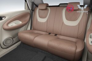 Ruang dalaman Bingo EV meneruskan konsep reka bentuk “retro moden.” Ia menampilkan skim warna dua tona, dipadankan dengan tempat duduk berkulit tiruan lembut berwarna Caramel Latte. Tempat duduk ini menggunakan kulit tiruan berlubang untuk keselesaan dan pengudaraan lebih baik, manakala panel dalaman menampilkan tekstur “seramik berkilat”, memberikan sentuhan premium dalam sebuah kenderaan elektrik kompak.