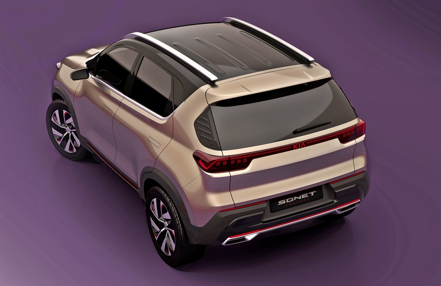 The interior is designed to appeal to the young, social, connected, tech-savvy Indian customer. The cabin is fitted with a 10.25-inch infotainment and navigation system with UVO Connect and a Bose premium audio system Kia says the Sonet concept indicates best-in-class interior space.