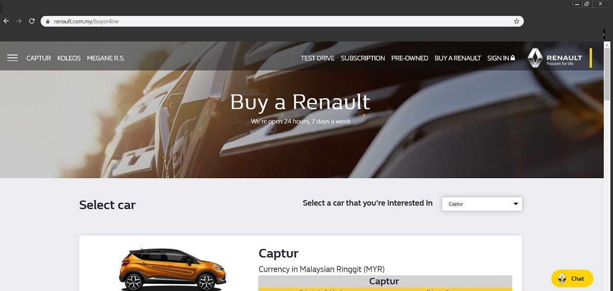 Besides the Captur, the Koleos and Megane R.S. are also available for purchase at the Renault E-Store.