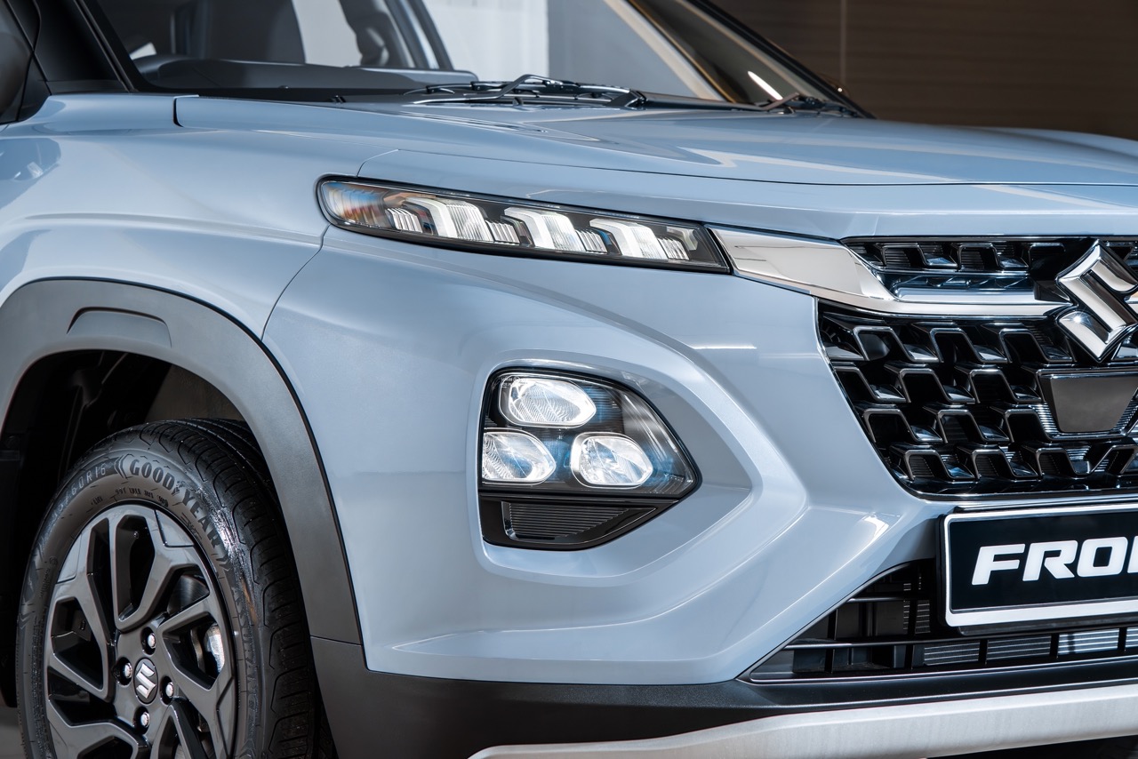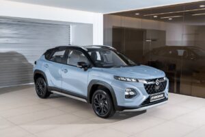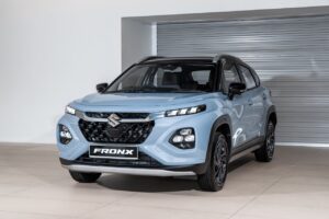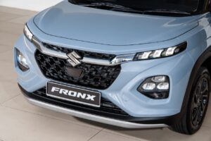 Built around Suzuki’s latest lightweight platform, the Fronx immediately stands out with its sharp front fascia, chrome-detailed grille and LED lighting. The coupe-like roofline and muscular shoulders add a sense of motion even at a standstill, while the protective cladding and skid plates underline its rugged intentions.